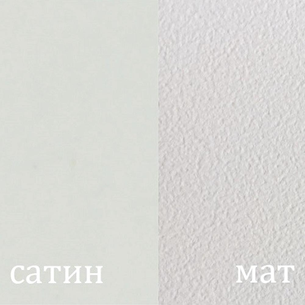The texture of a satin ceiling is less textured and differs from the texture of a matte ceiling. The satin surface looks flawlessly smooth and looks great in any interior.
